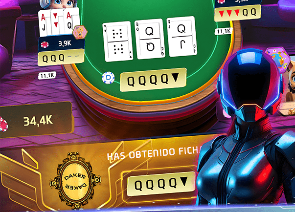 Daker póker online es un juego social que no incluye apuestas con dinero real.